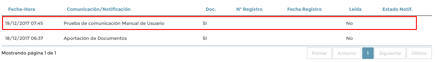 Si nos vamos a la rejilla de Comunicaciones/Notificaciones y seleccionamos comunicaciones de salida, podemos comprobar que la comunicación se ha enviado correctamente.